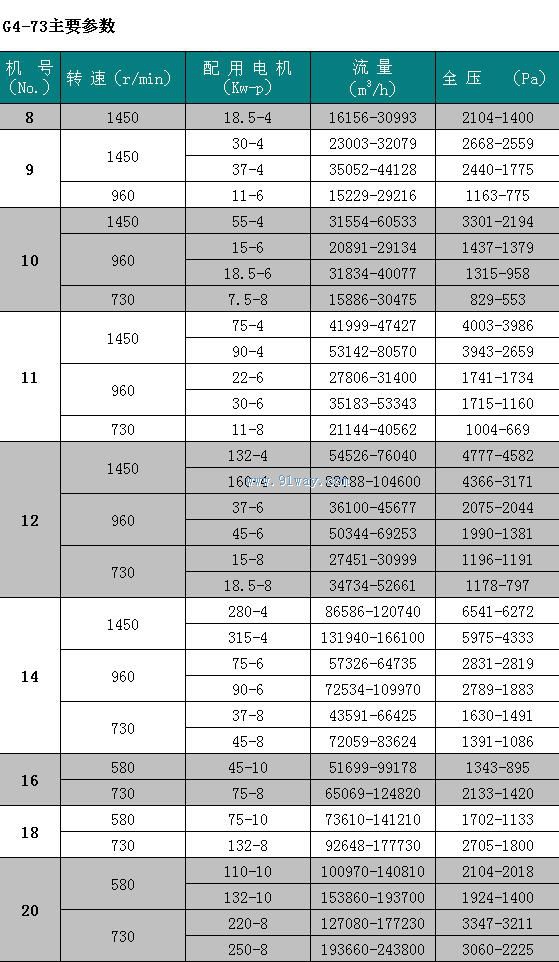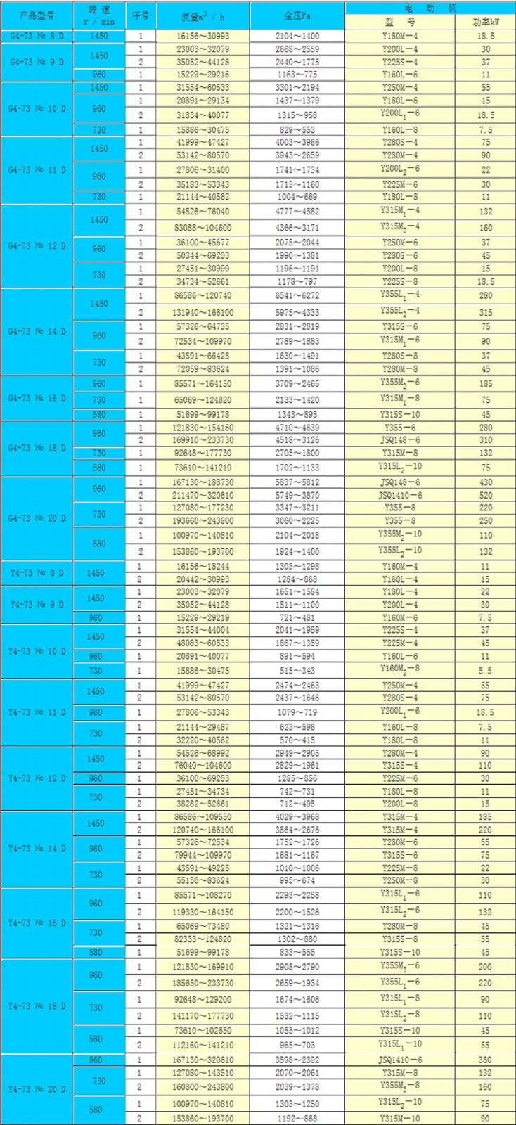 G4-73与Y4-73型锅炉通、引风机使用于火力发电厂中2~670T/h蒸气锅炉的通、引风机系统,在无其他其它要求时,G4-73亦可用于矿井通风及一般通风。