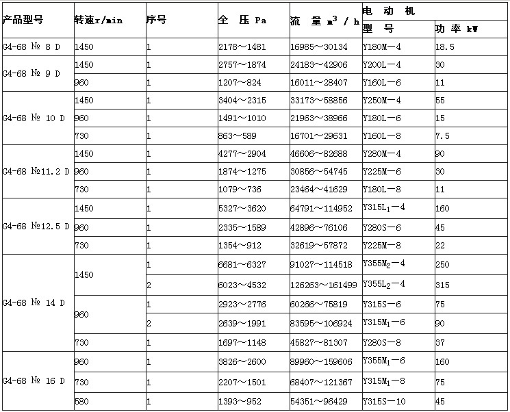 GY4-68型锅炉离心通、引风机是适用于火力发电厂中230T/h以下蒸汽锅炉的通、引风机系列。在无其他其它要求时,G4-68型亦可用于矿井通风及一般通风。