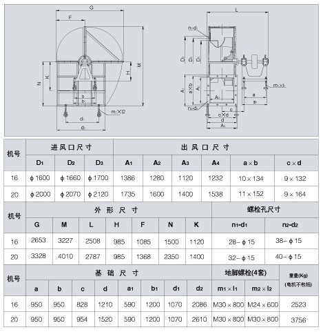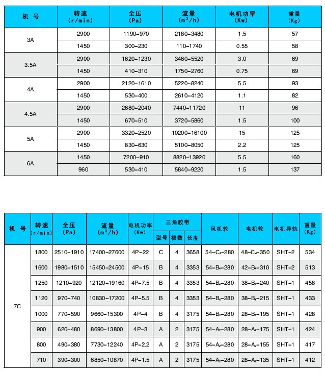 2、一般4-72离心式通风机标准产品无散热轮,如果风机是用于输送高温气体(温度200℃以下),选型时应选择加装散热轮。